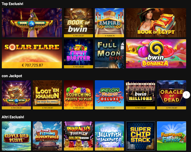 Bwin offre un'esperienza di gioco online eccezionale con la sua vasta selezione di slot machine. Con oltre 2000 titoli tra cui scegliere, i giocatori possono immergersi in una varietà di temi, grafiche accattivanti e funzioni speciali.