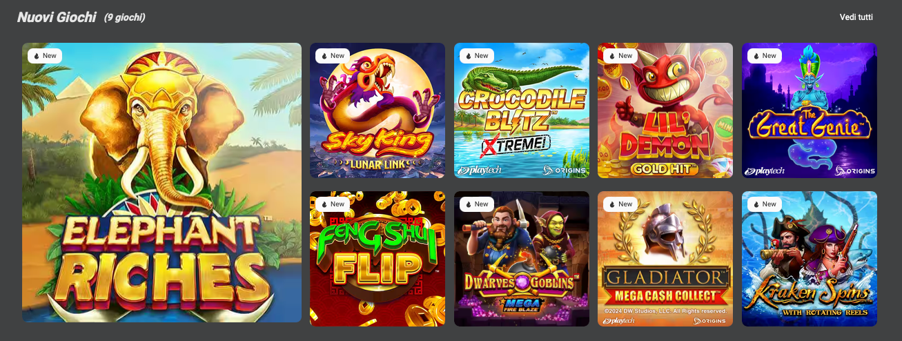 La sezione nuovi giochi, infine, si compone con una collezione delle nuove slot machine aggiunte da provare assolutamente: